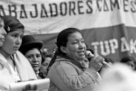 "Yo la conocí en un pueblo minero llamado Llallagua donde estuve pasando un tiempo, en una asamblea de mineros. Ella era la única mujer, eran todos hombres. Me sorprendió encontrar una mujer en medio de aquel hombrerío y más me sorprendió verla en acción. Ella se alzó entre todos, interrumpió una discusión que llevaba ya mucho rato y dijo: 'Yo quiero preguntar, preguntar este hito […]: ¿Cuál es nuestro enemigo principal?'. Entonces se alzaron voces que decían: 'la burguesía', 'la oligarquía', 'el Ejército', 'la tecnocracia' y ella corrigió: 'No, compañeros: nuestro enemigo principal es el miedo y lo llevamos adentro'".