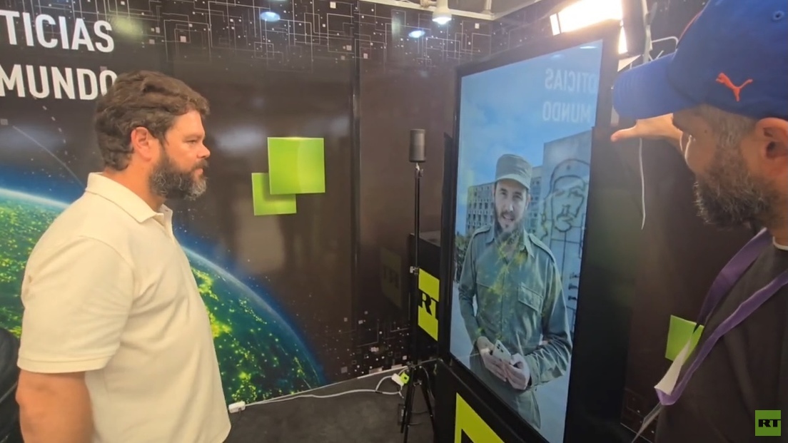 Fidel Antonio Castro Smirnov, el nieto de Fidel Castro, asistió el estand de RT en el V Coloquio Internacional Patria de Comunicación Digital e hizo un 'selfi' con su abuelo, usando la herramienta de IA del medio.